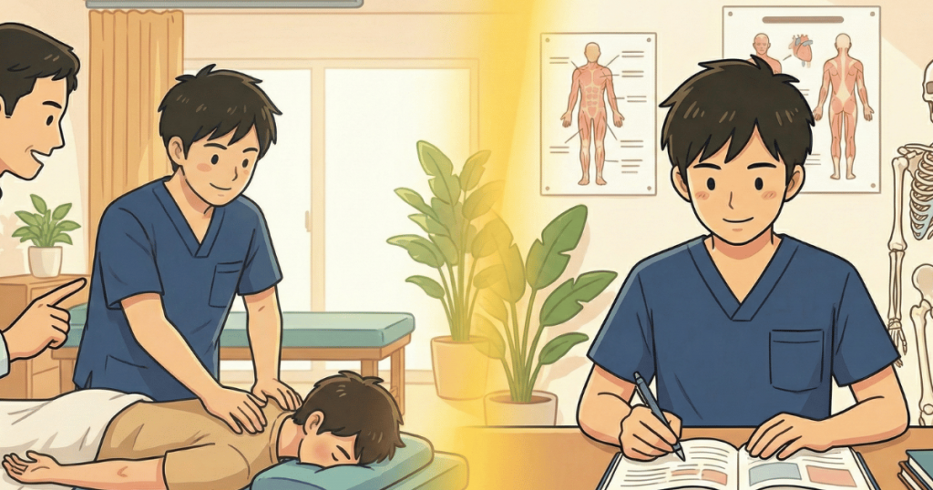 受付業務だけでなく、技術を学び、テストに合格すれば学生のうちから施術も可能(整体業務のみ)。